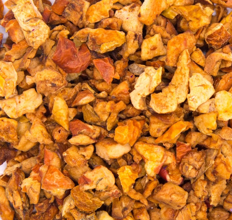 Кусочки яблок, кусочки имбиря, кусочки корицы, аромат меда.