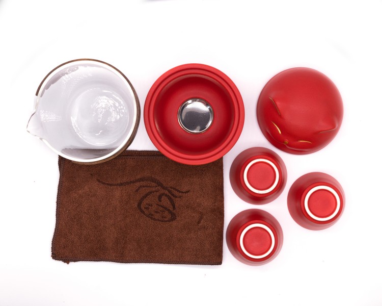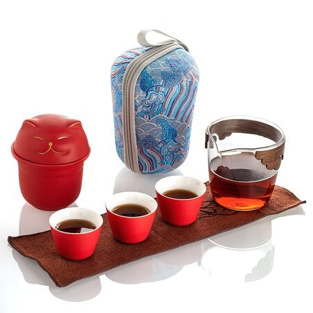 Походный чайный набор Кот, цвет красный, на 3 персоны